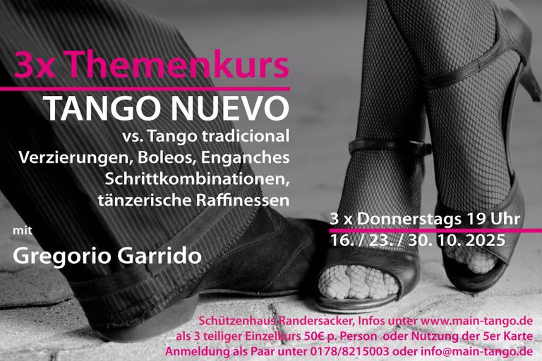 - 25€ p.Person, Anmeldung unter 0178 821 5003 (whatsapp) oder info@main-tango.de bis 03.11.2025
