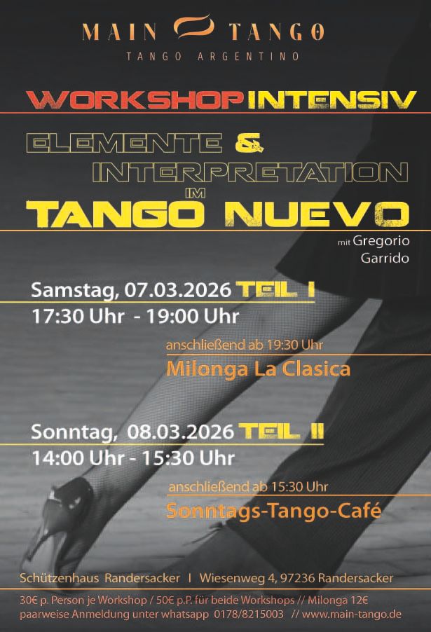 - 1,5h Intensiv-Seminar mit Gregorio Garrido, Beginn: 17:30 Uhr